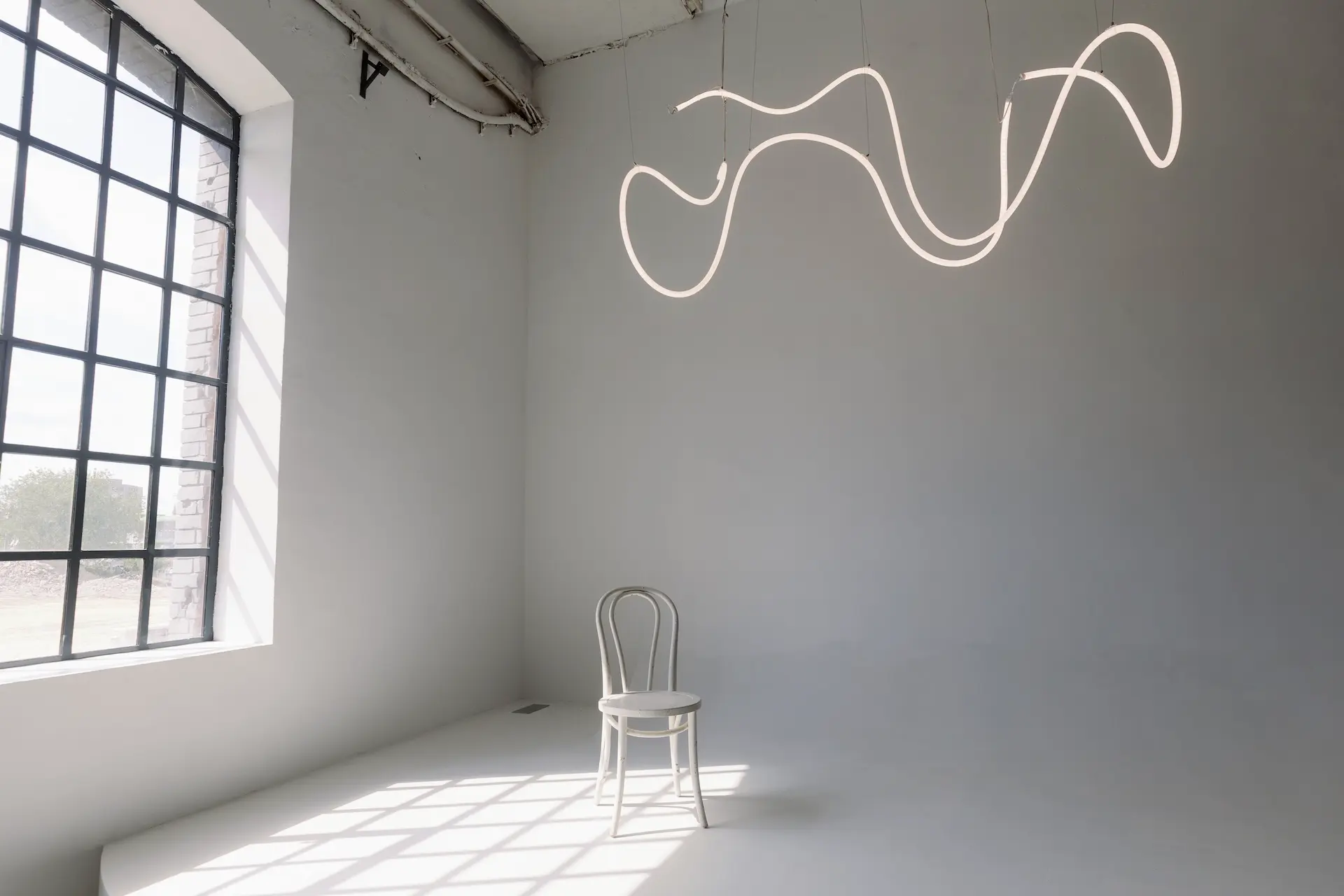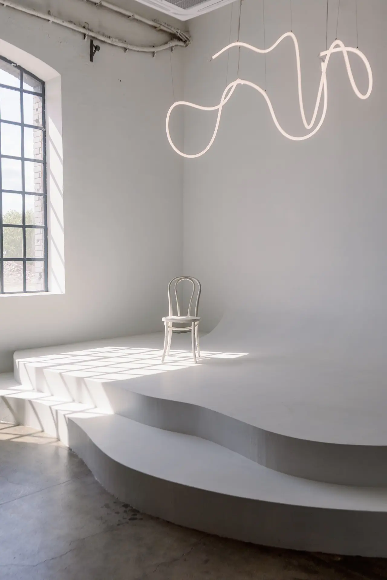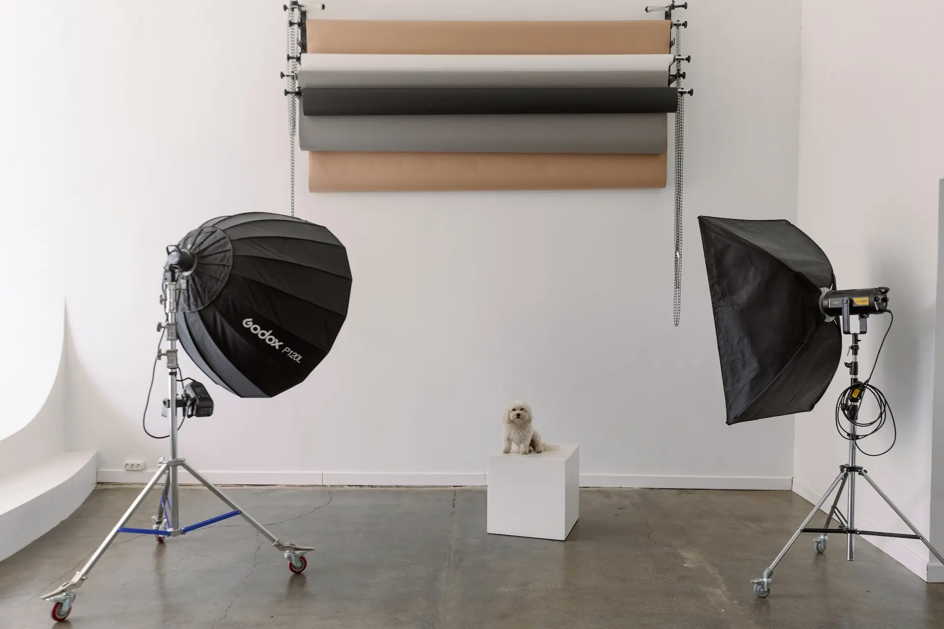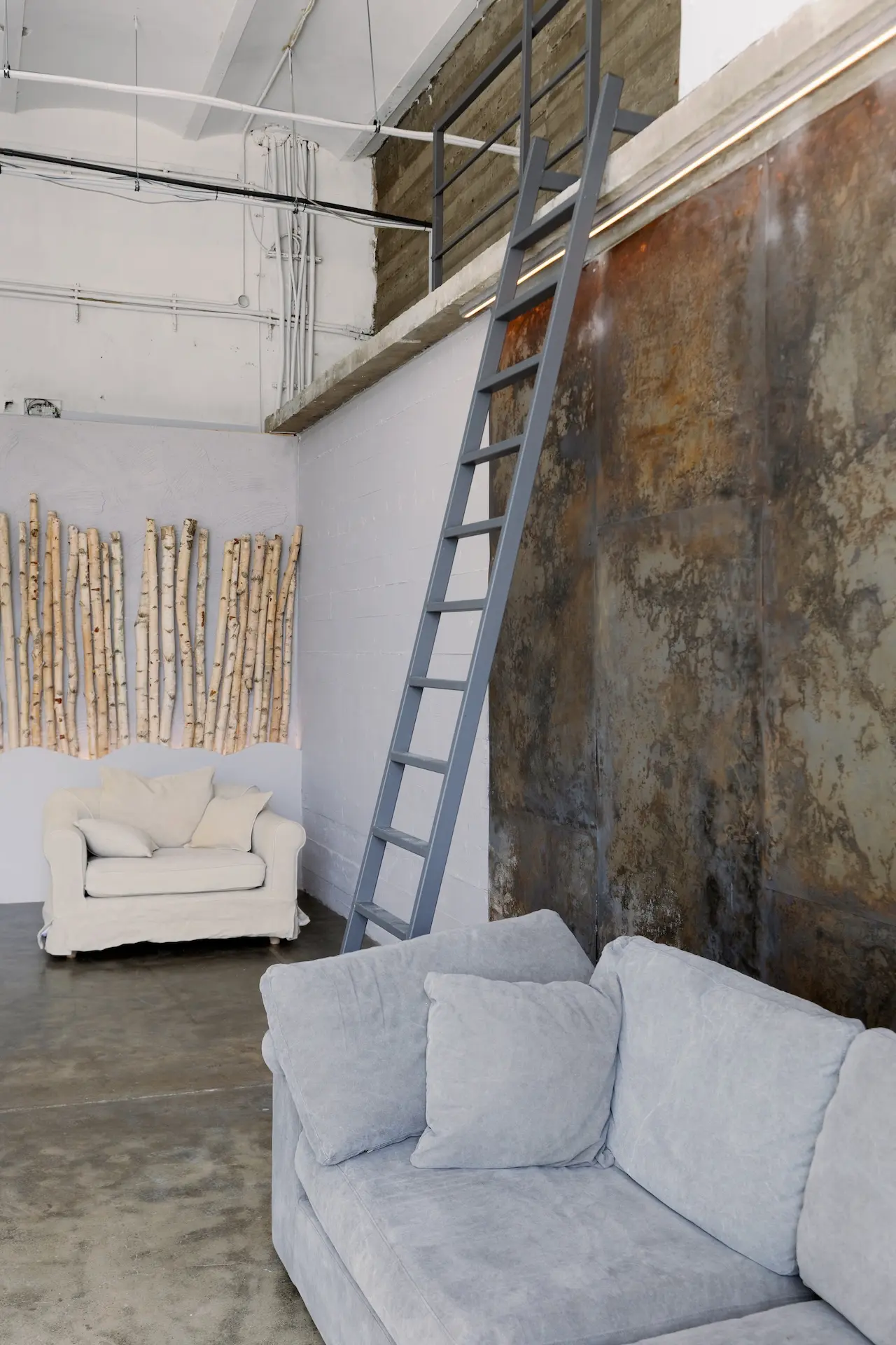 Our room: Infinity is Studio Madison’s newest space. It comes with a clean, characterful design of 73 sqm. The white curved podium, white infinity background and white walls bring in plenty of light. Paper backdrops have also been relocated here, placed in a comfortable corner. Creative backgrounds, a large armchair and sofa were also included if you’re not just taking photos with minimal backgrounds. Coloured concrete wall, special antiqued iron sheet wall, natural birch branches are the backdrops on this side.