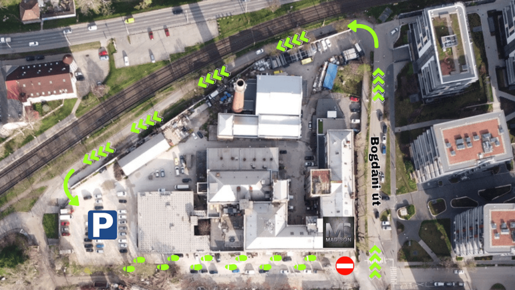 Hamarosan változik a forgalmi rend a telepen, a parkolót a Bogdáni úton továbbhaladva a nyilakkal jelölt módon fogjátok tudni megközelíteni.